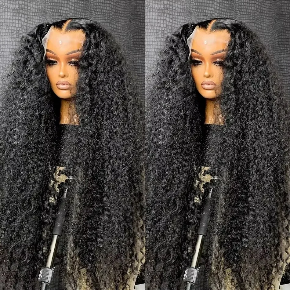 Long Deep Wave Black Color Synthetic 13X4 HD Lace Frontal Wig For Black Women Prepucked Bleach Knots Glueless Wig Daily Party
